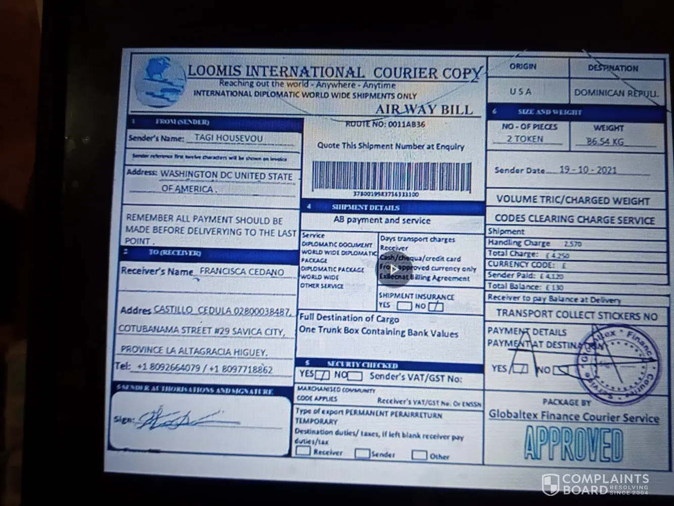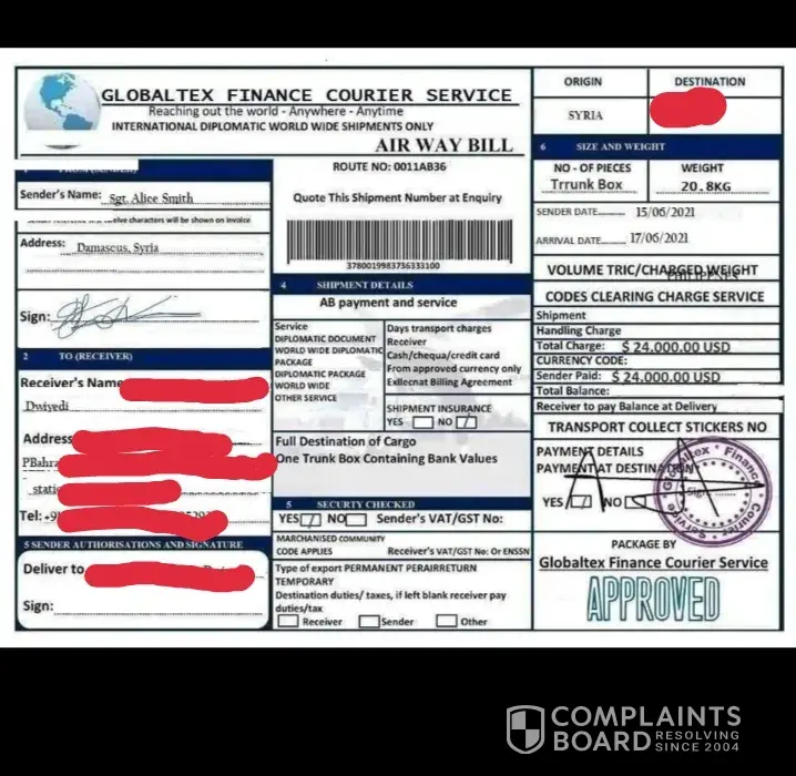 GlobalTex Finance Courier Service review: Courier/parcel ( 163 comments)