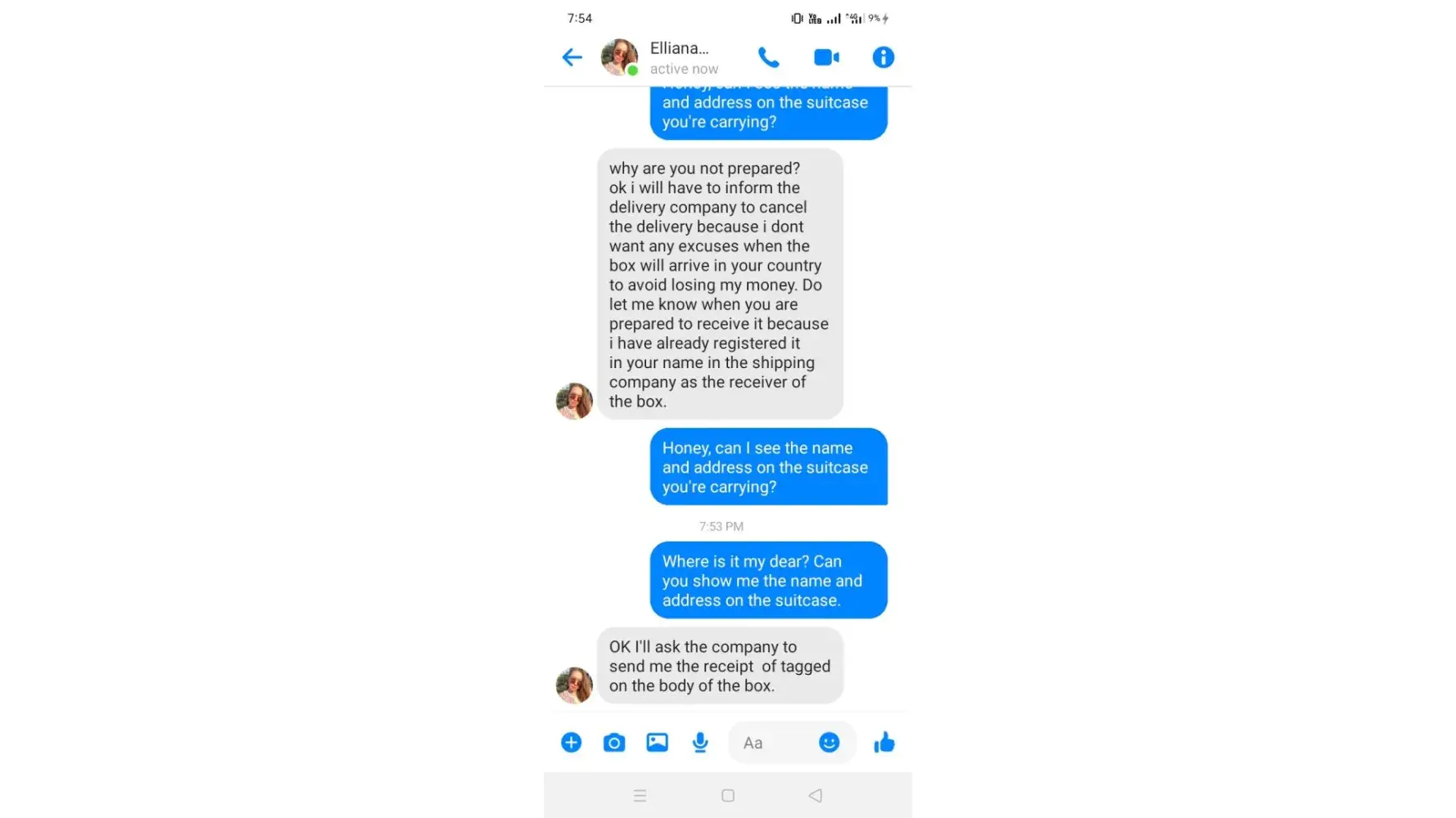 Hello brother I need to know about it it's very important a military girl forcing me to send some money please help me bro what I have to do