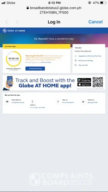 April 11, I called again to confirm this message. we have explored our options and the CSR and I agreed to have another Volume boost of 200GB for another 299 pesos and will be refunded as per the documentation of the call last April 11. Volume boost took effect and reflected on my Globe@home app BUT no update on the data usage for me to track.