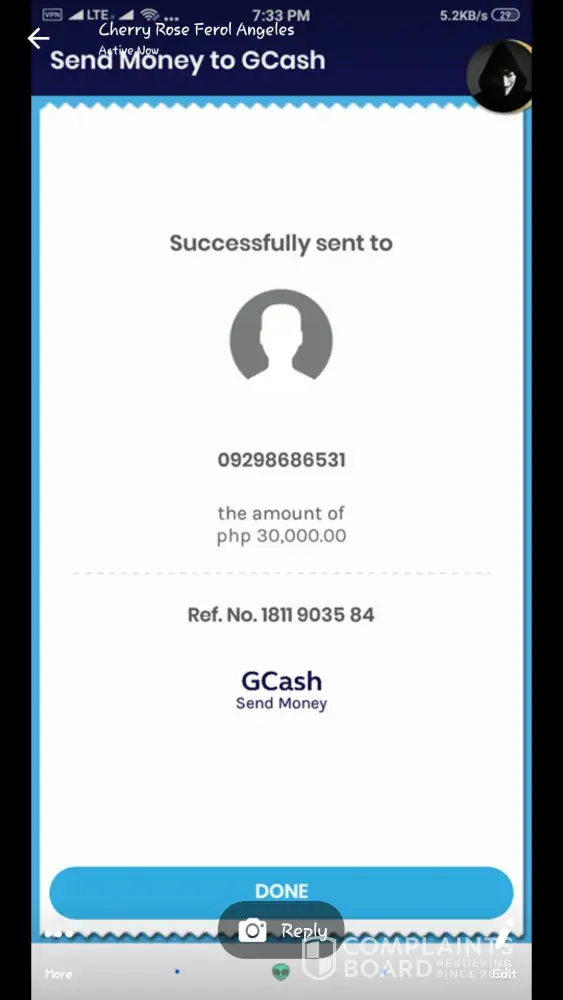 She sent 30000php as bill payment thru gcash to cell number [protected]
