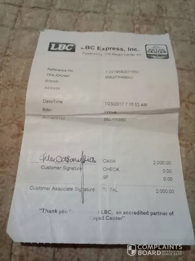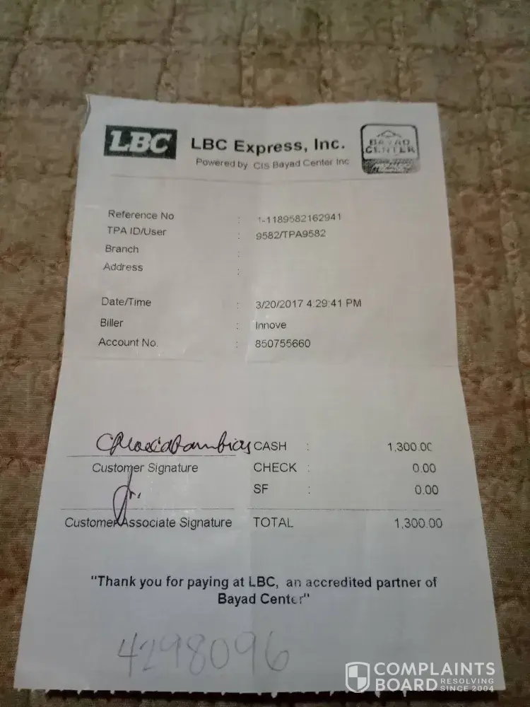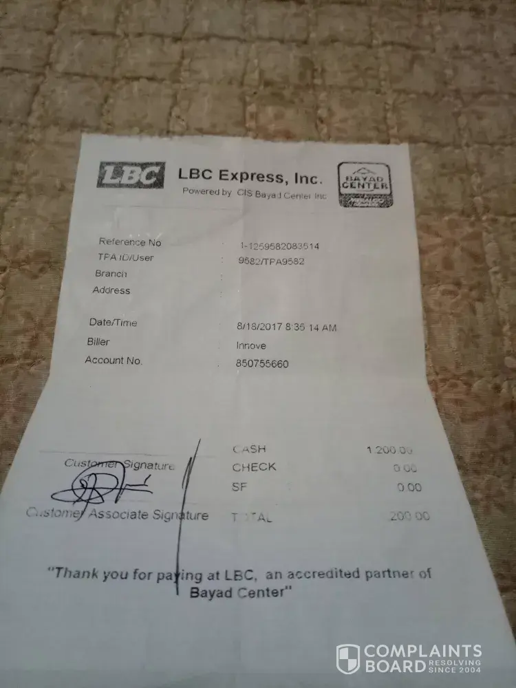 Innove, taguig reference number h1000676850c, $26.56 and $1.43 charged