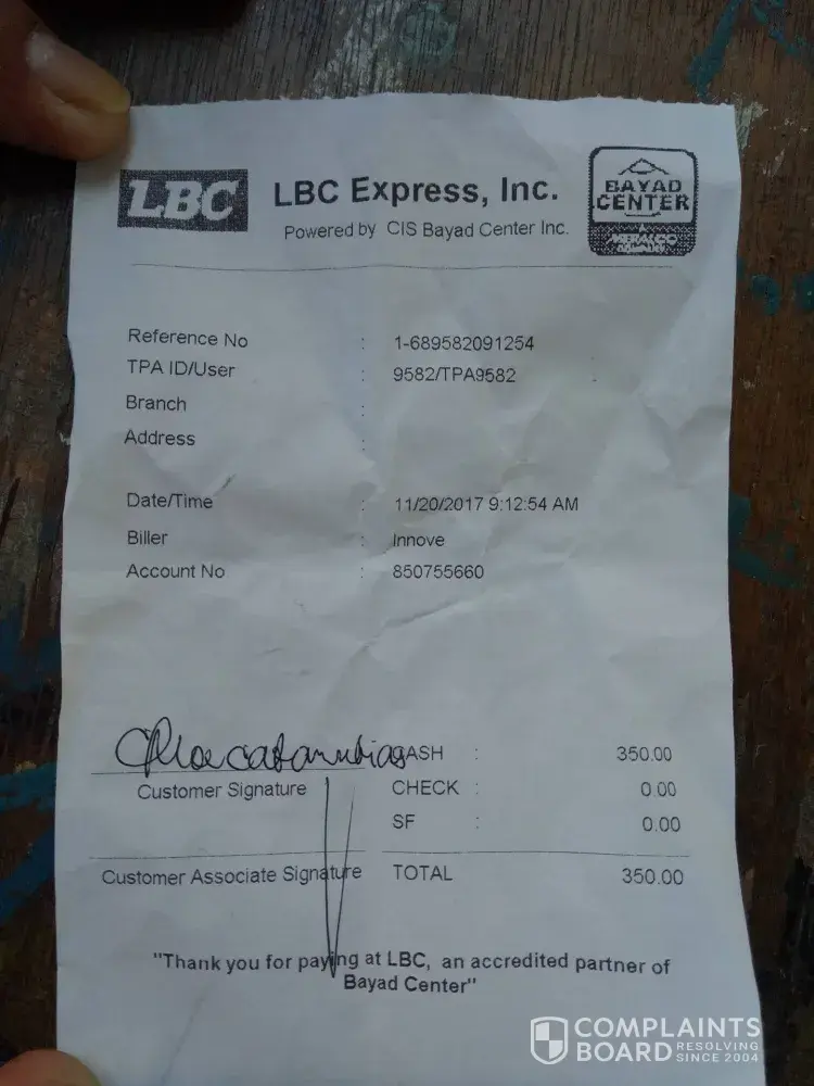 Innove, taguig - reference number h50006e81d72, $1.53 and $29.51 charged