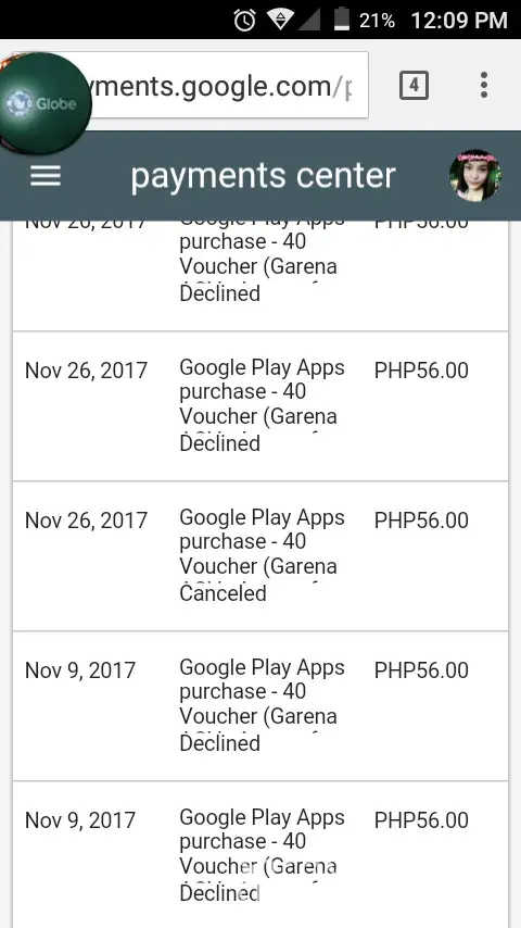 I explaine it slowly ha para maintindihan nio globe. The P66 wodth of load is from my wifi's no. ([protected]) i send it to my another no. Which is ([protected]). So i use the P66 pesos to buy Garena arena of valor voucher that is worth P56. Ive been charge by 3507 and says ive been charge by P62 na akala ko ay successful ung transaction. I wait for 24hrs for the voucher then i contacted Garena Arena of valor customer service and check my google playstore history which is DECLINED YUNG order ko so bakit ako na charge if hindi ko narecieve un item na binili ko pero wala na ung P62 load ko