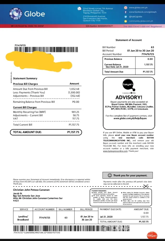 I paid my last monthly due amounting to P1832.00 last June 6. Since then I have not used my Globe At Home and my line was disconnected last August because of unpaid dues. Yet, recently, I have a total unpaid balance of P6, 089.48 even if my line was already disconnected. You are still charging me even if my line was already disconnected.