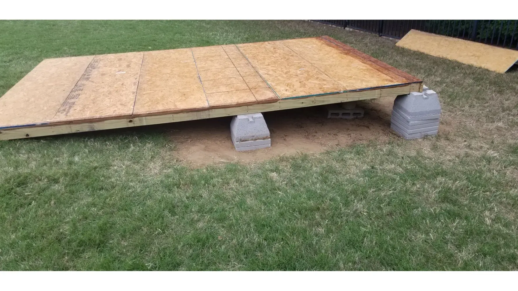 My yard is sloped which entailed raising the wooden base above ground, higher at the back than at the front.