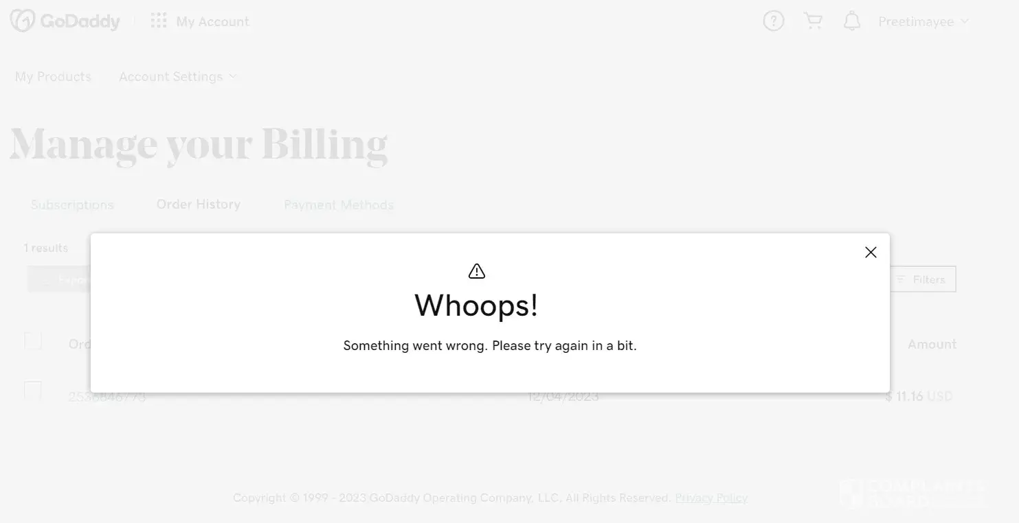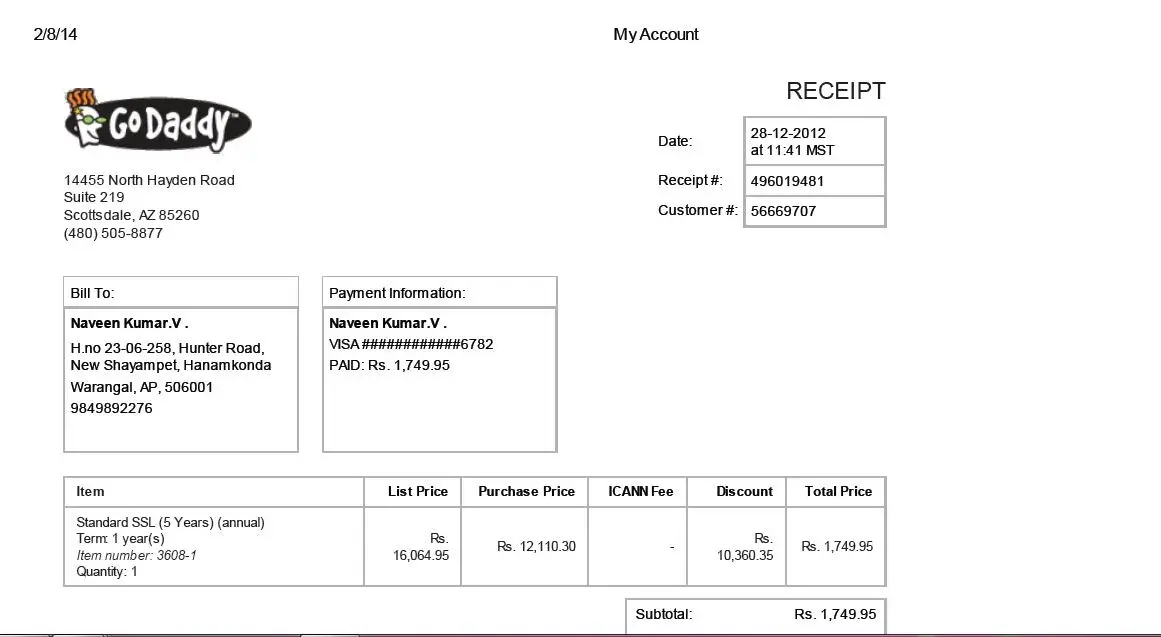 I got billed for renewal of Godaddy.com hosting for two years. I had few problems with my bill.