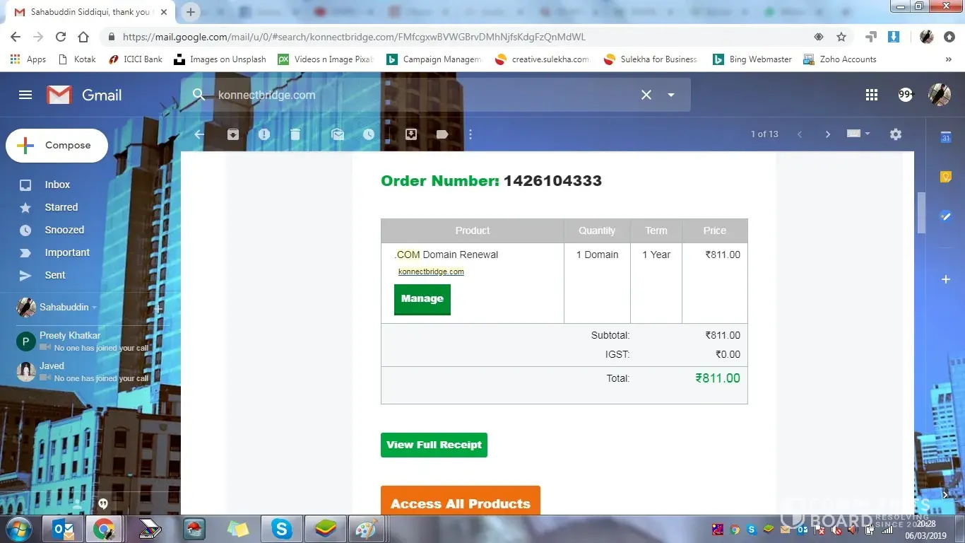 We were running a company in partnership with name of JST Business and we have domain from Godaddy and after 6 or 7 month my partner have resigned from the company after that i took handover of everything from him that took almost 6 month and after that i came to know my Konectbridge.com is got expired and I renewed that 30 January 2019 for next one and it got renewed for with no error, todays i was going to do live my website on that domain but that was not showing in my godaddy account then i called to Customer care and they said you can't get that domain due to some internal policy issues but at that time i haven't get any error while renewing the domain.
