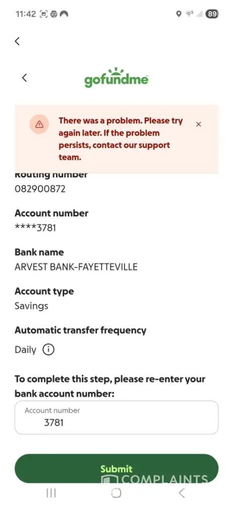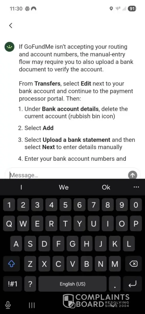 I submitted documents to my bank, but they reversed the transaction and tried to give the money back to GoFundMe. It was a real mess, and I will never make any contributions to a website like this again.