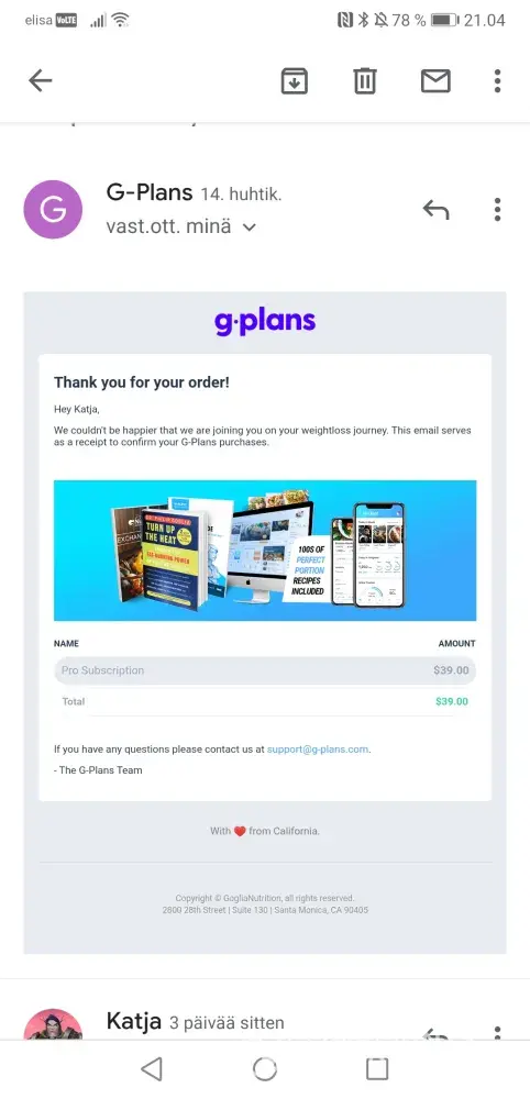 We couldn't be happier that we are joining you on your weightloss journey. This email serves as a reciept to confirm your G-Plans purchases.