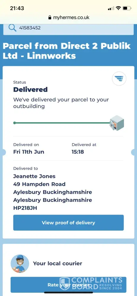 I bought a ticket for a surprise gift, ticket number #[protected]-5530. I had a Hermes card with a left in out building ticked. I had no contact informing me of a delivery due. I looked in my greenhouse & nothing was there. I went onto Hermes tracking & there shows a photo of a black plastic covered box on my doorstep, in the open. Not in an out building. There was no package on my doorstep when I arrived home but Hermes showed a direct 2 Publik ltd delivery. I have emailed gogroopie 3 times as this is their merchant. Each time I get a reply saying ‘ we've contacted our merchant & they say the courier has delivered your parcel. I have explained that I don't have it but every email has the exact same answer. It takes them 3 days at least to reply to each email too. I have requested a refund but they are ignoring my request & repeating emails. The photos show the parcel was left unattended on my doorstep which is is in the open on a road side