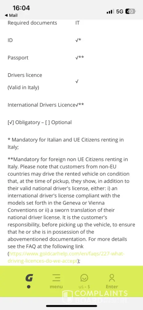 I did complain. I did not have any other possibility than book another car for 1 day. The least that this company can do is reimburse 100% of the payment of 379 euros.