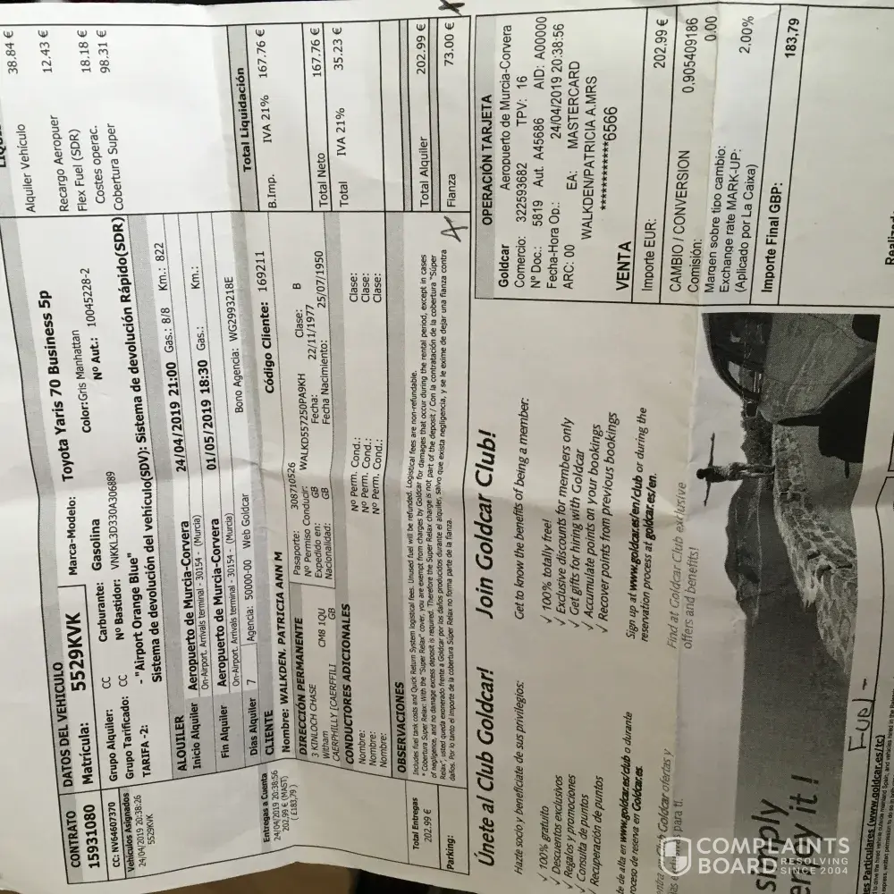 Think everyone about those CHEATERS and never rent in Goldcar.