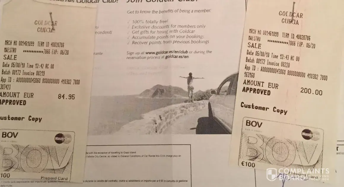 ongeautoriseerde creditcard kosten door goldcar sevilla