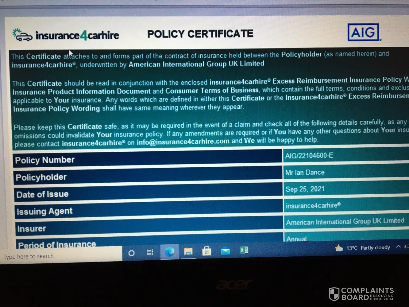 Took out annual independent excess waiver policy with Insurance 4 car hire on 25/9/21(see attached policy document).