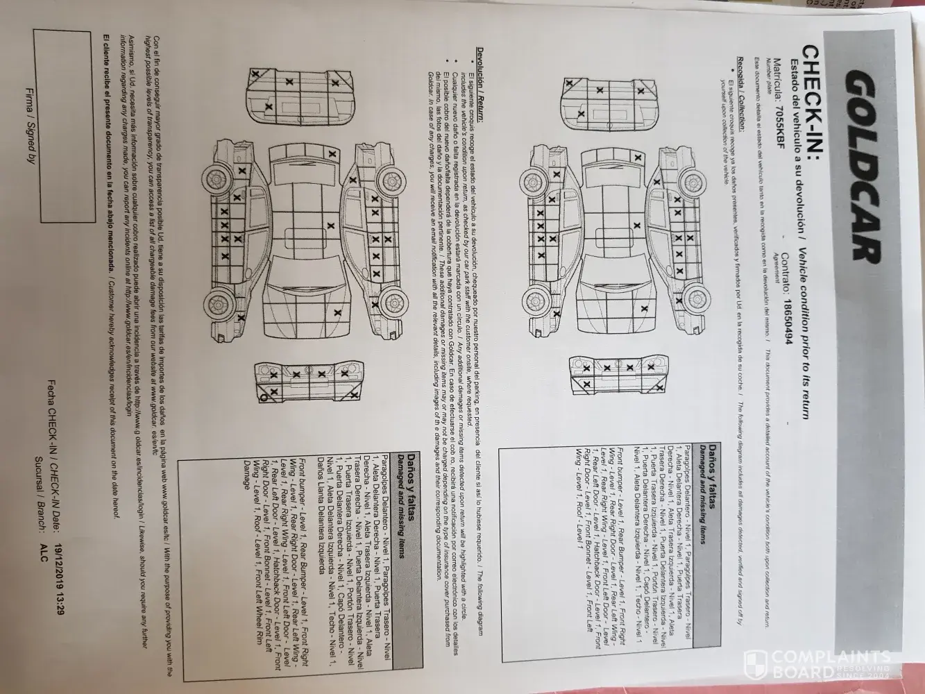 I have to say this was a very slick, if sickening "customer service" operation, I didn't stand a chance against Goldcar. Apparently you need to have your sheet stamped, the girl telling you it is okay is not enough. It appears she deliberately sent me away so they could set up a charge that I would not find out about for some time and could not then argue with them.