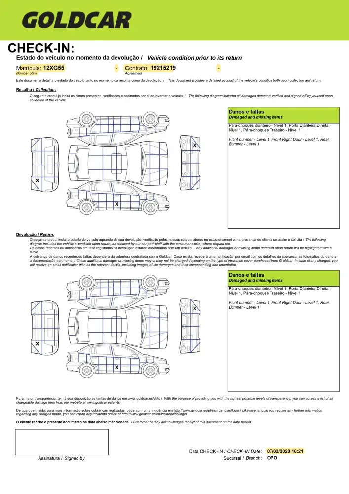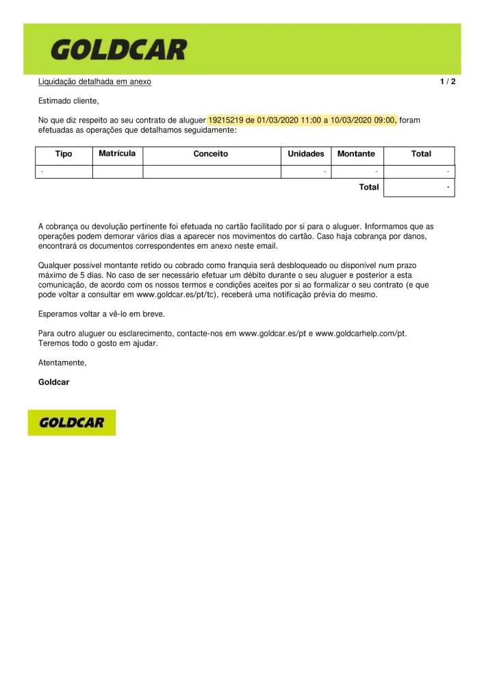 Goldcar rental contract no. [protected] - Codigo cliente 4715694