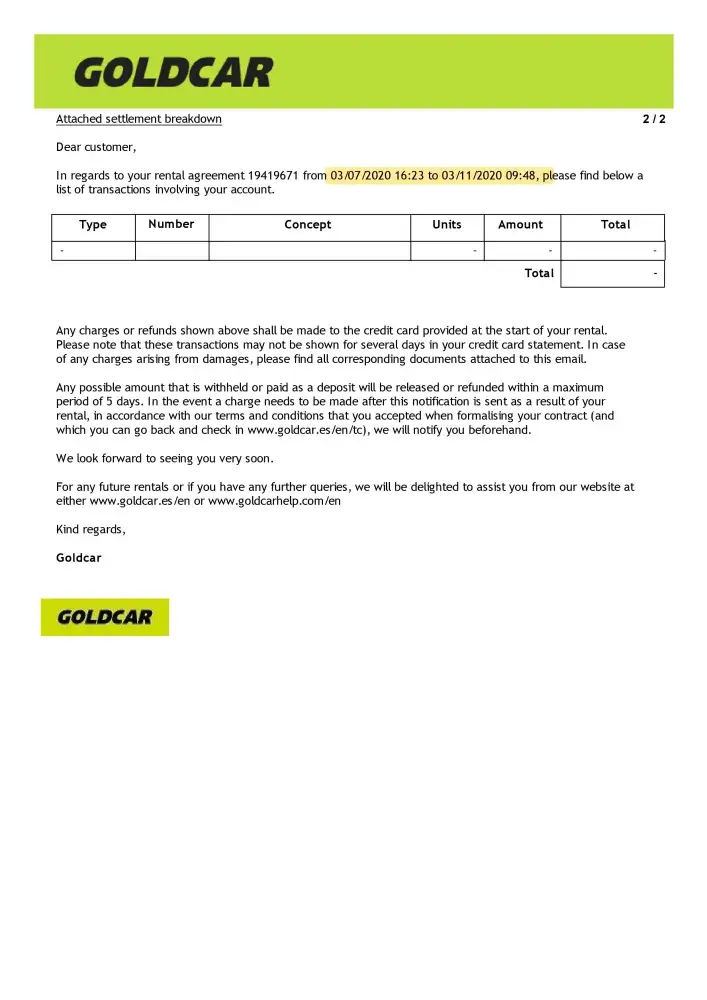 Goldcar is known as a decent and responsible company but the way you are now handling our issue disappoints me tremendously.