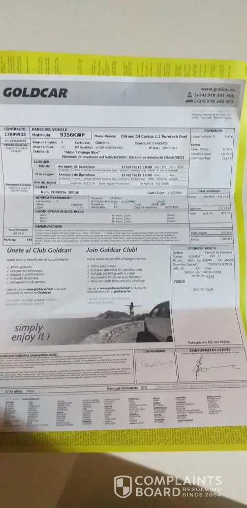 This is the first and most likely the last time we will use Goldcar for any future car hire during our visits to Spain, and we will share our story with family and friends who also will be making frequent visits to Spain.