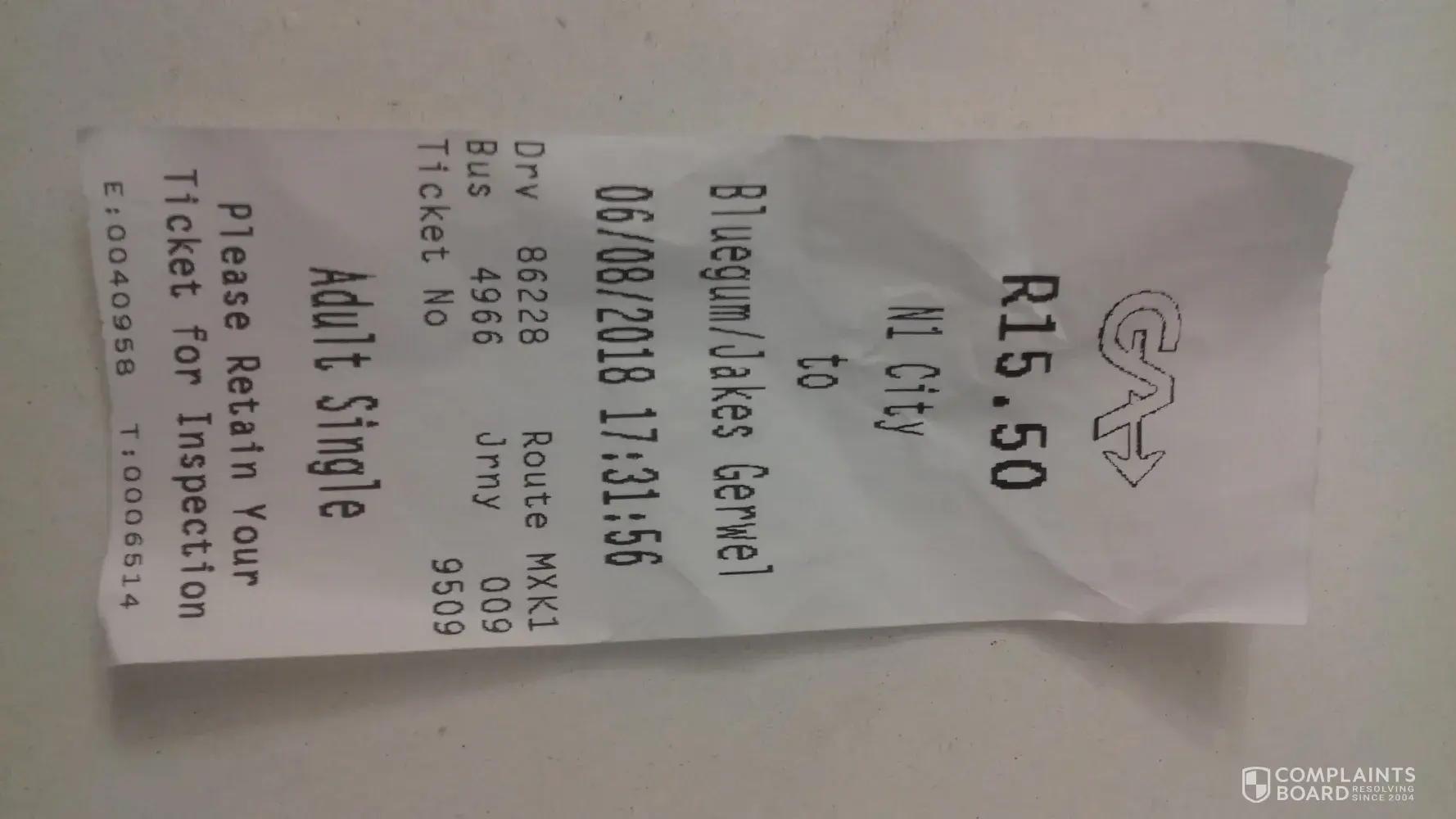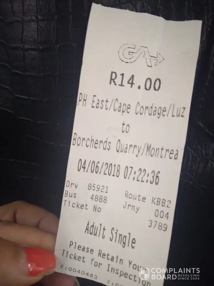 On that specific day i purchased/ requested for 2 bus tickets which one of was a monthly Delft-Cpt and weekly Delft- Maitland. I then pursued on to travelling with this ticket (delft -cpt) until i came home and the ticket had issues. I was upset at the moment and queried with the bus driver what am i to do, he then advised me to report to the depot where i was told that the ticket was purchased on the incorrect route. At this point it was almost a week later and the guys at the depot advised me to report back to the service station i purchased the ticket from and then i wet on 16.09.2018 to take it back but the manager wasn't available to assist me, i left the ticket with them and they notified me i should return the following day as the manager would have feedback for me. Upon my return the manager was once again not available to assist me and i was given the ticket back as they advised they scanned it and two rides were taken off the ticket and in my defence i cannot see how this is possible? The ticked nearly cost, me R600, Im a single parent and i have been using GABS for years and this is the first bad experience I've had, i never wanted any money back as this is not the issue i need to get to work i just wanted a ticket on the correct route and the mistake made was not mine...so ill just take it up to inform the public about this, such service is really actually appalling!