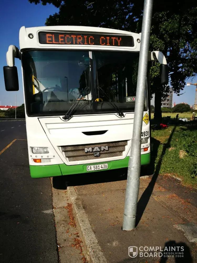 Furthermore, I was walking on my usual route home on Darling street turning into Sir Lowry, when I saw a bus in the bus stop/loading zone on the right hand verge, but not parked in the road. No, this driver of Bus CA 581436 #4931, was parked on the entire pavement, that I had to walk through grass and homeless people to get past the bus. Please discipline your drivers!