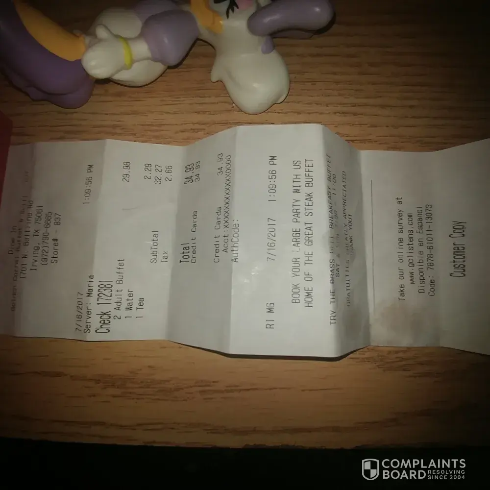 Hi I was one of the many customers went into one of your local restaurants in irving on last Sunday and I did my enjoy my service my water was nasty my food was really cold and nasty the environment was really dirty I always have problems going to this one golden corral and just so often I had tbiygb I spent to much for what I wasn't given . the manager mentioned she could not return my money. After I asked a waitress for the manager several times. Til after a hour she came after I got her attention myself and said there was nothing she could not do . I didn't eat at all so please help me solve this problem but I already have it in my mind I want be going back here . not a good restaurant to keep open.