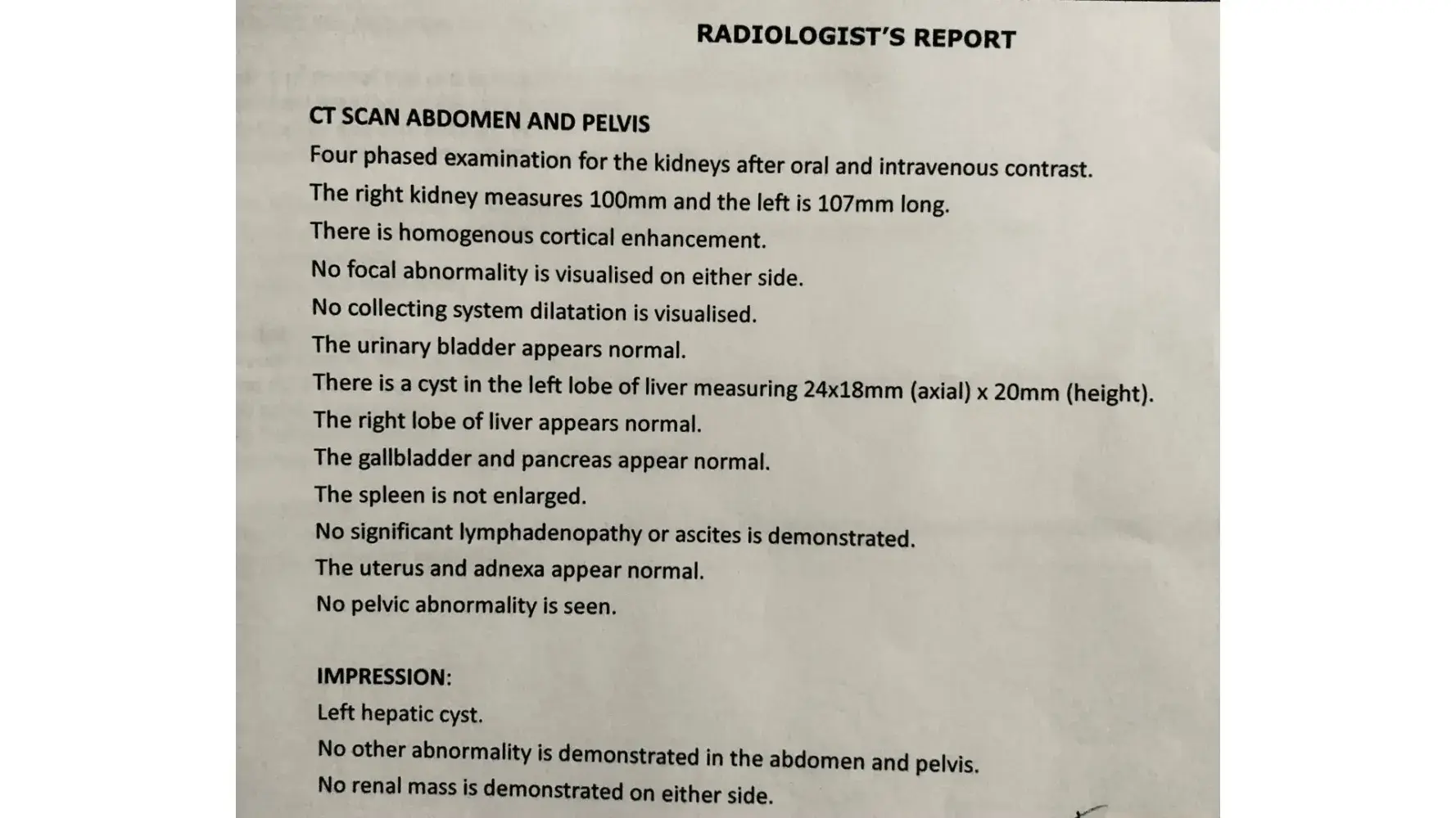 My wife went for an annual medical screening recently. The radiologist doing the ultrasound of abdomen, which she did in seconds, reported a growth in the adrenal gland and suggested a CT scan. The scan required is a Contrast Enhanced CT scan, which I did at a reputed hospital in the city. After all the mental anguish and pain of procedures and radiation, the report from the senior radiologist came as nothing to report in the kidneys or adrenals. She even missed a liver cyst. I should be suing the radiologist and the GHHS for the unnecessary costs, pain and anxiety that my wife had to endure.