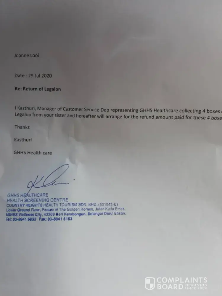 1. They have changed their company name from Country Heights Health Tourism Sdn Bhd to GHS Healthcare Sdn Bhd without letter to inform.