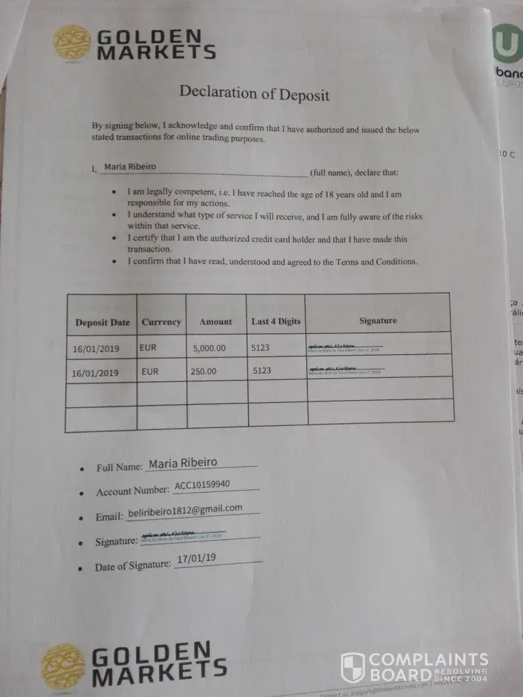 My mother was scammed into investing 500 usd into this scam. Since then I have tried to contact golden markets and we got nothing but phone calls asking for information. All of which was sent in order to withdraw the full ammount deposited to them. This has failed. How best can we approach this and get our money back? My mopther is at a vulnerable age and was prone to scammers talking her into something that she knew nothing about. This shouldnt be allowed.