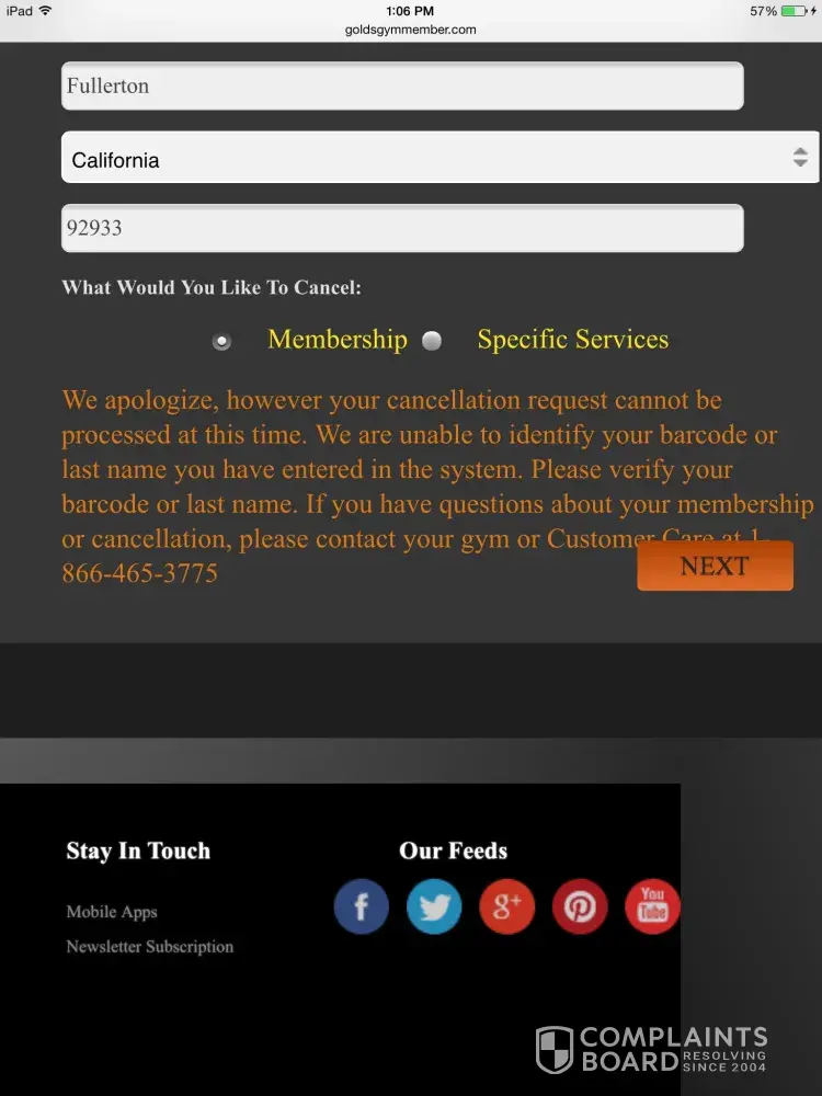 I tried to cancel from this gym ever since I got horrible ring worm using one of their "clean" towels. It took me months to treat the ringworm and when my mother tried to cancel my membership (Im on a family plan) they told her that I must be on site to do the cancellation in person myself. That was absolute ### because I went to the location in person to be told repetitively that they don't do cancellations in the gym. The guy working at the registration desk was the same guy who signed me up. I remember he had a lot of enthusiasm to sign me up, but was extremely neglecting when it came to cancellation. He basically gave me no more info than a scribbled out phone number, and just repeated again and again that they don't do cancellations in the gym. So basically they blatantly lied to my mother and wasted my time. I called the number at home to find that it was not the branch number but some other number that is owned by a different franchise from the Fullerton golds gym. I was told on the phone that I should call my gym to get their local franchise number and the customer service guy (Sergio I think) just hung up abruptly as if he was sick of it. By now I expected this horrible customer service. On top of that once I got the franchise number I called to find out that their offices were CLOSED INDEFINITELY. I called the Fullerton golds gym AGAIN to get more excuses that they were off on the 24th to 25th and that I should try calling on Friday and "see if that works", which I highly doubt. I didn't want to waste time so I looked all over the web for cancellation methods. I finally found a YouTube video explaining to go on a specific golds gym url. I followed the url and entered all my info (barcode number, name, etc) only to get am error on the official website. I'm so frustrated and fed up with this entire system, it's like their making me run around in endless circles. I'm either redirected or sent to a dead end and I know I'm not the only one having cancellation issues. There's numerous people online who are were getting scammed by golds gym as well. This gym is not only disgustingly unsanitary but extremely questionable in their means of client support and service.