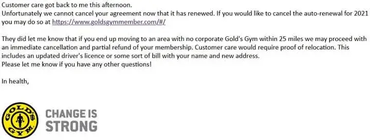 I said I did NOT want auto-renewal on my membership. I also asked front desk staff 3 times when my membership needed to be renewed, & all they would say is "You have plenty of time, enjoy your workout." Gold's auto-renewed my annual membership a couple days ago anyway. It's a gym membership, not a heart transplant, they can change it to a monthly membership like I asked. I further explained to one of the managers at a Gold's location that I may need to move to another city, & that is the reason I need to switch to monthly until I find out which city I will be living in. Additionally, the link sent to me to cancel auto-renewal does not work; all it says is 'Oops! An unexpected error has occurred." Very disappointed in how Gold's does business.