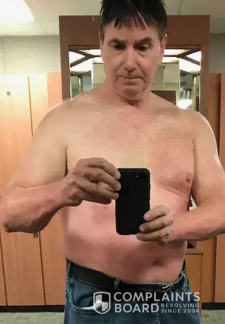 When I went in the hot tub today the chemicals made my entire body itchy .. My penis was hurting. When I got out my entire body was red, when I removed my shorts my underwear which was black when I got in had turned red. I told one of the guys working there in the locker room he could see how red my body was and he told me to report it on-line to this site. When I was leaving he said we asked other members who were in the hot tub if they had any issues and they said no.
