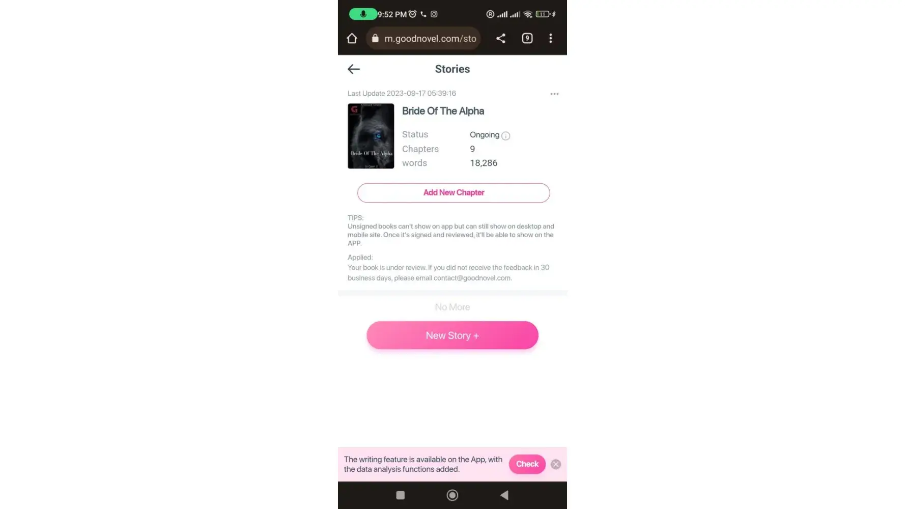 Good afternoon goodnovel My name is Ariel Jegede and i recently joined good novel my First book is still ongoing and unfortunately i have a complaint .my book has been over the review stage and i have successfully applied for a contract in which i have proof (screenshots)but for some reason i go to upload a new chapter on my book today at 17/9/2023 (05:39:16) and im seeing that the book has been placed under review again and any trace of me applying for an exclusive contract is gone .please what do i do and how can this be fixed because i have filled out the form and posted a picture of my passport according to the necessities that were given to fill out (which is an important personal information)i was in the stage of waiting to get my contract approved by your company pls see to it that this issue is fixed immediately