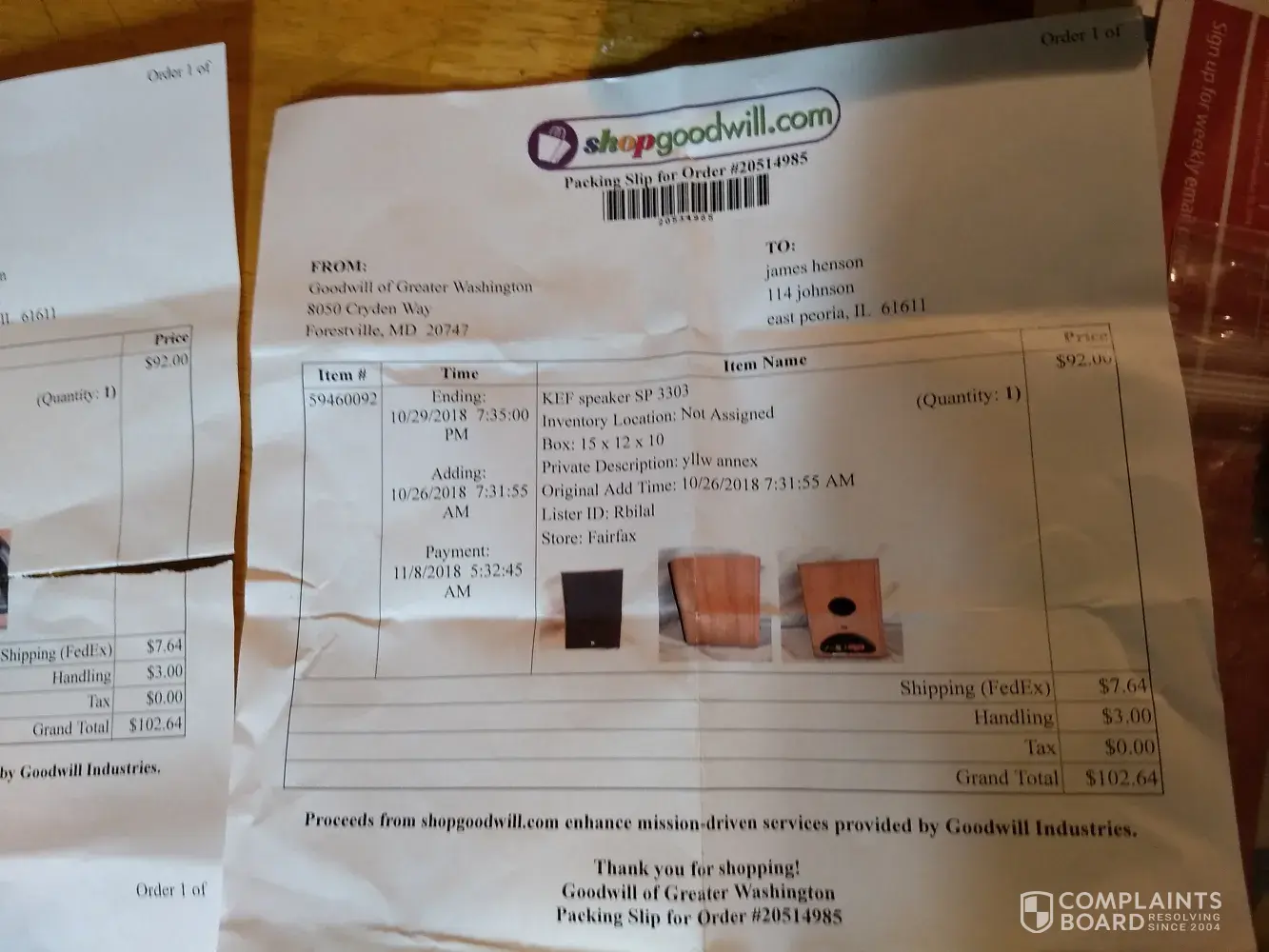 Hello...this is regarding the Goodwill Ind Of Fort Worth...Fort Worth TX 76119...i corresponded with customer service and packing of item since it was electronics and heavy but delicate. I was reassured item would arrive safely. Item was lightly packed and destroyed. I asked for a refund and was told to send dimensions of box etc. and ship it back. Why? it's junk now. I have been a customer going on 3 year'snow and the service is getting considerably worse in the shipping department so much so i'm considering quitting the website and shopping with Goodwill...i can't keep paying for busted item's through negligence or incompetence.It's no fun shopping and winning bid's putting out good more and having it destroying in transit. My name is James Henson...my contact info is [protected] johnson st east peoria il 61611. The first 8 photo's are of most recent item...i have included a few more that are also recent.