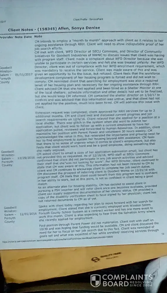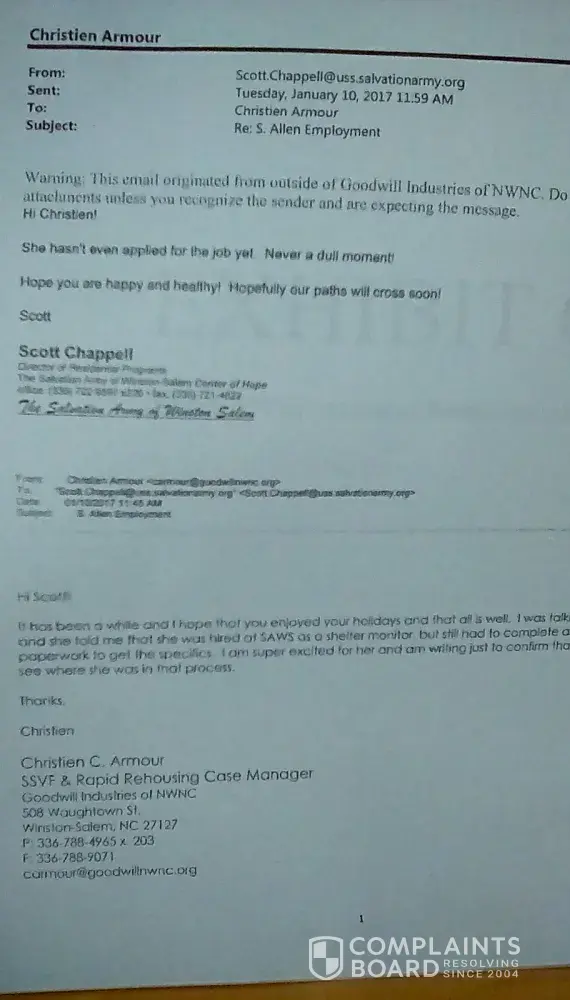 All conversation are documented through Department of Justice. SECU Commons Workforce Development Lakisha Jordan and Rapid Re-Housing Christian Armor in Winston-Salem N.C.
