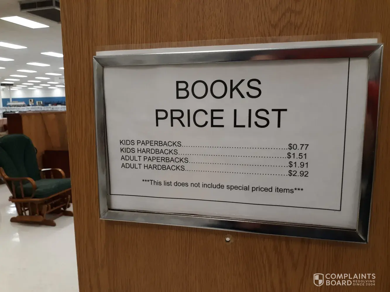 One of the Goodwill posted BOOKS PRICE LIST sign did not upload with the original posting. Here it is again - and to repeat - None (0) of the children's hardback books that I was charged $2.92 for were "specially marked" and the only tendered explanation from the Goodwill store manage was that "we want more money for some books". And as an added bonus - the Goodwill manager claimed to have prior retail management experience! Yikes!