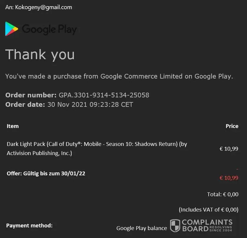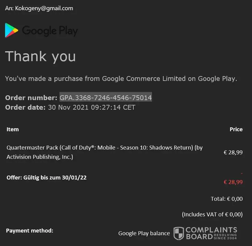 please take the Call of duty adds back and refund the voucher value onto my Google account.