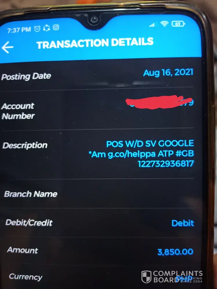 I checked the balance on my bank of Commerce account this afternoon and noticed a lot less money in my account than should have been. That's when I checked the transactions and noticed a transaction for #399.99 for Google services "amzpay". I do not have Google Pay and I have checked my Amazon account and no transaction in that amount has occurred today, yesterday, or ever. I am demanding the money be returned to my account within the next few days. There was no authorization for the transaction so the immediate return of my funds would be the only resolution that would be satisfactory. My contact information is [protected]@yahoo.com. No further action will be taken if the funds are returned forthwith.