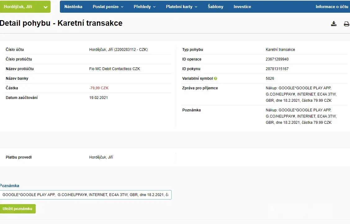 VÄera mi 18.2.2021 byli strženy poplatky za nÄ›jakej nákup v aplikaci za 79.99 kÄ a ani jsem nic nekupoval tak