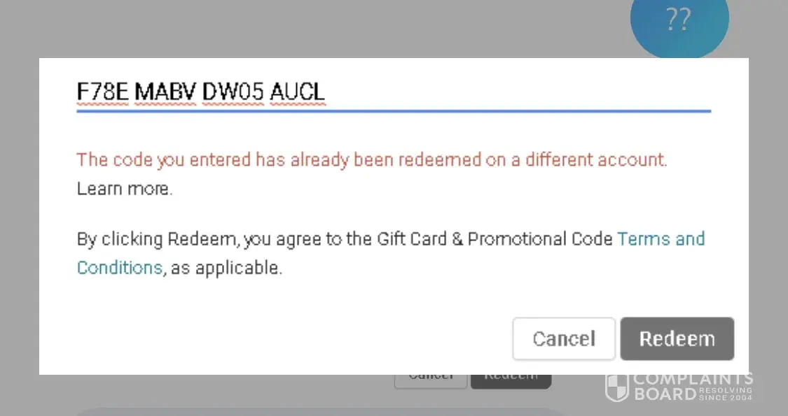 Play cards being redeemed before I can redeem them to a friend 4 failures: card $100, $100, $50, $50 dollars.. For $50 oj60 50cg wor4 ujey says already redeemed it more than once.. By [protected]@gmail.com the person I keep trying to send it too. Yessica hander [protected]@gmail.com no luck four times...$50 6755 147h jgcw 8xrl redeemed by [protected]@gmail.com $100 1nat voum to8m ov2s failed to receive also. $100 48x9 8by6 hz3p dck3 failed also already redeemed... You selling redeemed cards are when the cards are activated someone is getting them faster than I can send them. I text the code directly on hangouts. It says redeemed... Please help I have a few images but can't upload to here? Finally I had my friend send pictures of theft.