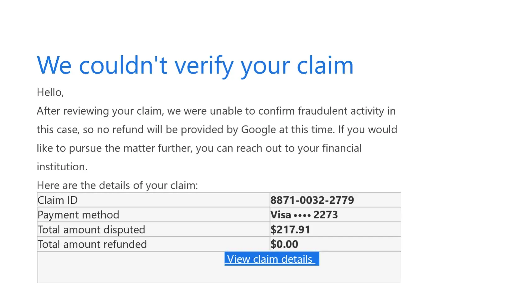 Google 2020/12/07我遇到未經授權的信用卡費用,要求退款