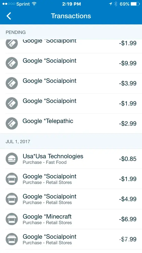 My bank account has four unauthorized transactions from google*telepathic g.co/payhelp for $2.99 each. Dates amount was taken out on were 6/7/17, 6/14/17, 6/21/17 & 6/28/17. I nor anyone in my family has purchased anything from google. I do not even know what this is or where it would have come from as we do not pay for any kind of apps. I will not supply my bank info on this complaint form as i do not know if it can be trusted. I want my money refunded to me.