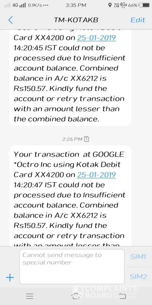The above mentioned number complaint number, dispute has been raised in the customer care. Transactions of