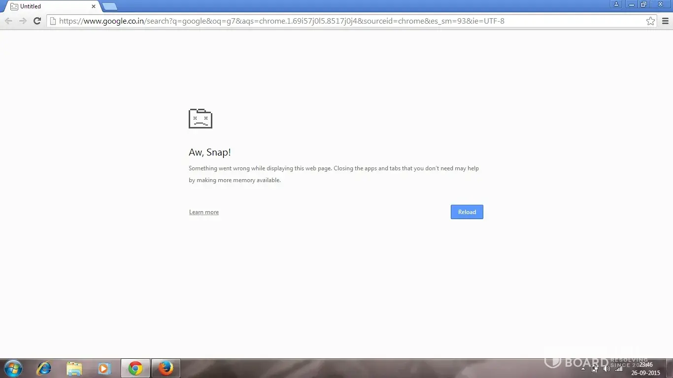 I am just open my laptop & open chrome browser and its started showin error that "Aw, Snap! Something went wrong while displaying this web page. Closing the apps and tabs that you don't need may help by making more memory available"