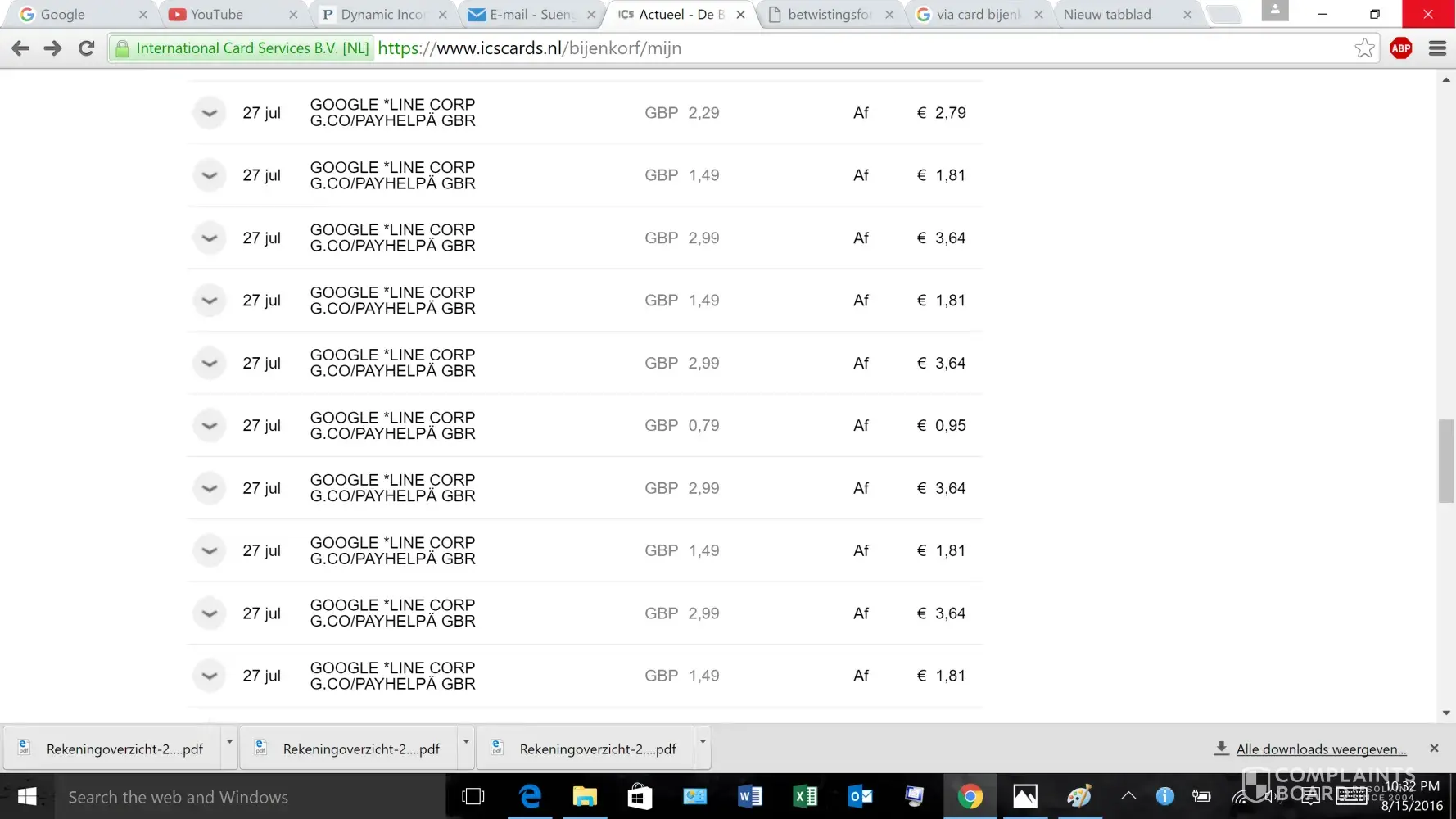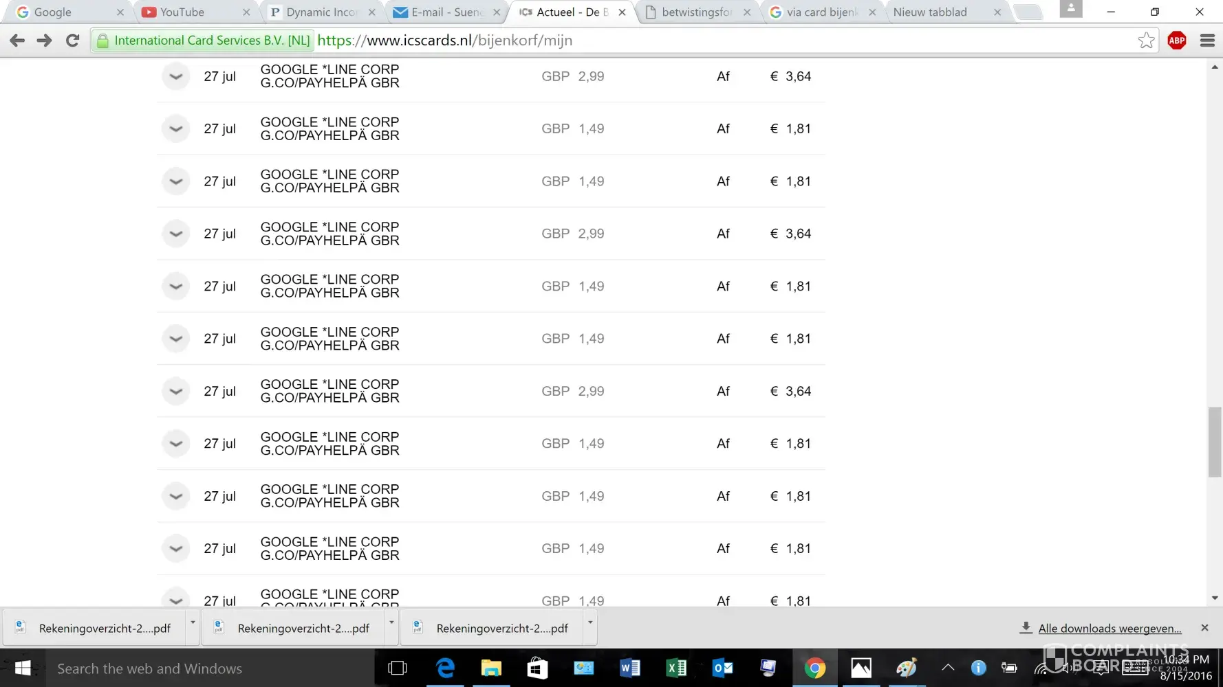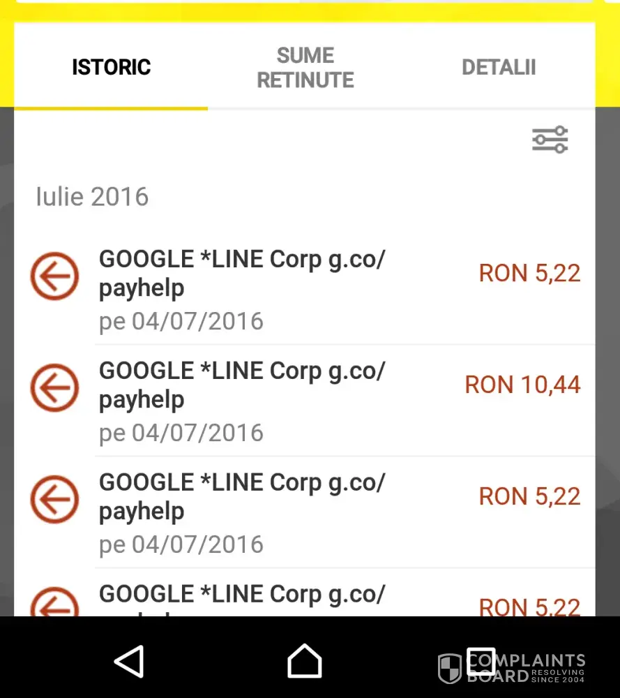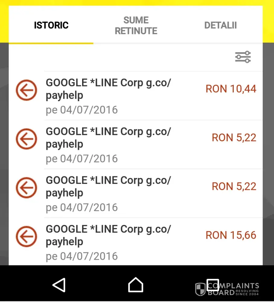 On July 27 2016 Google Line Corporation charge my creditcard (see reference) 45 times . The total amount is GBP 86, 06. The payments was not authorized by me. Please pay back the the total amount ASAP through my creditcard.
