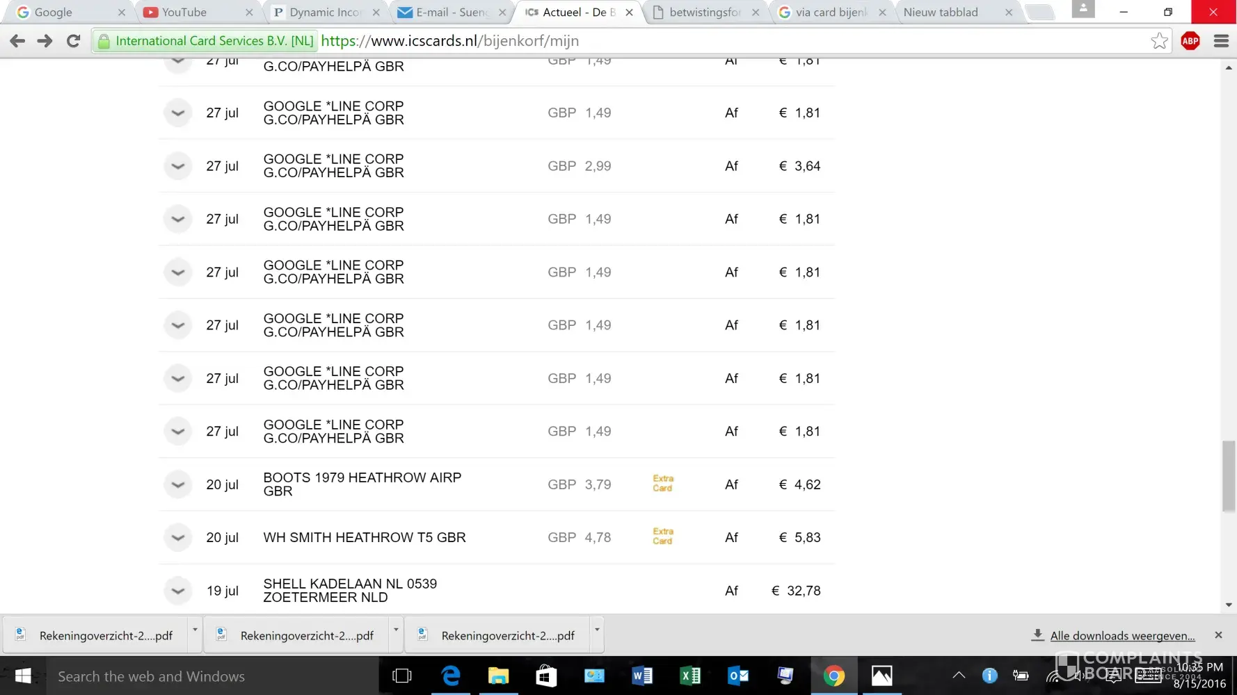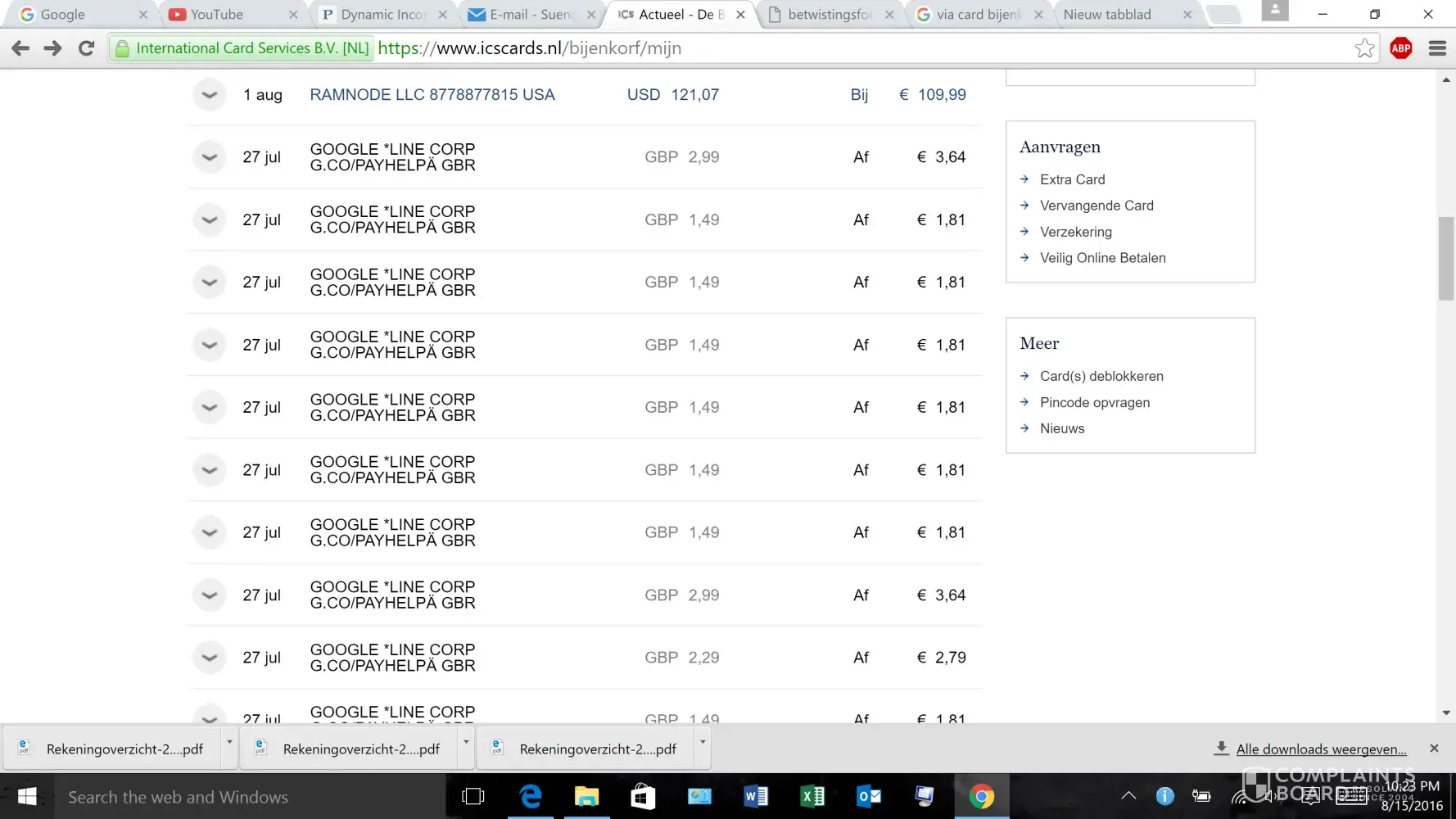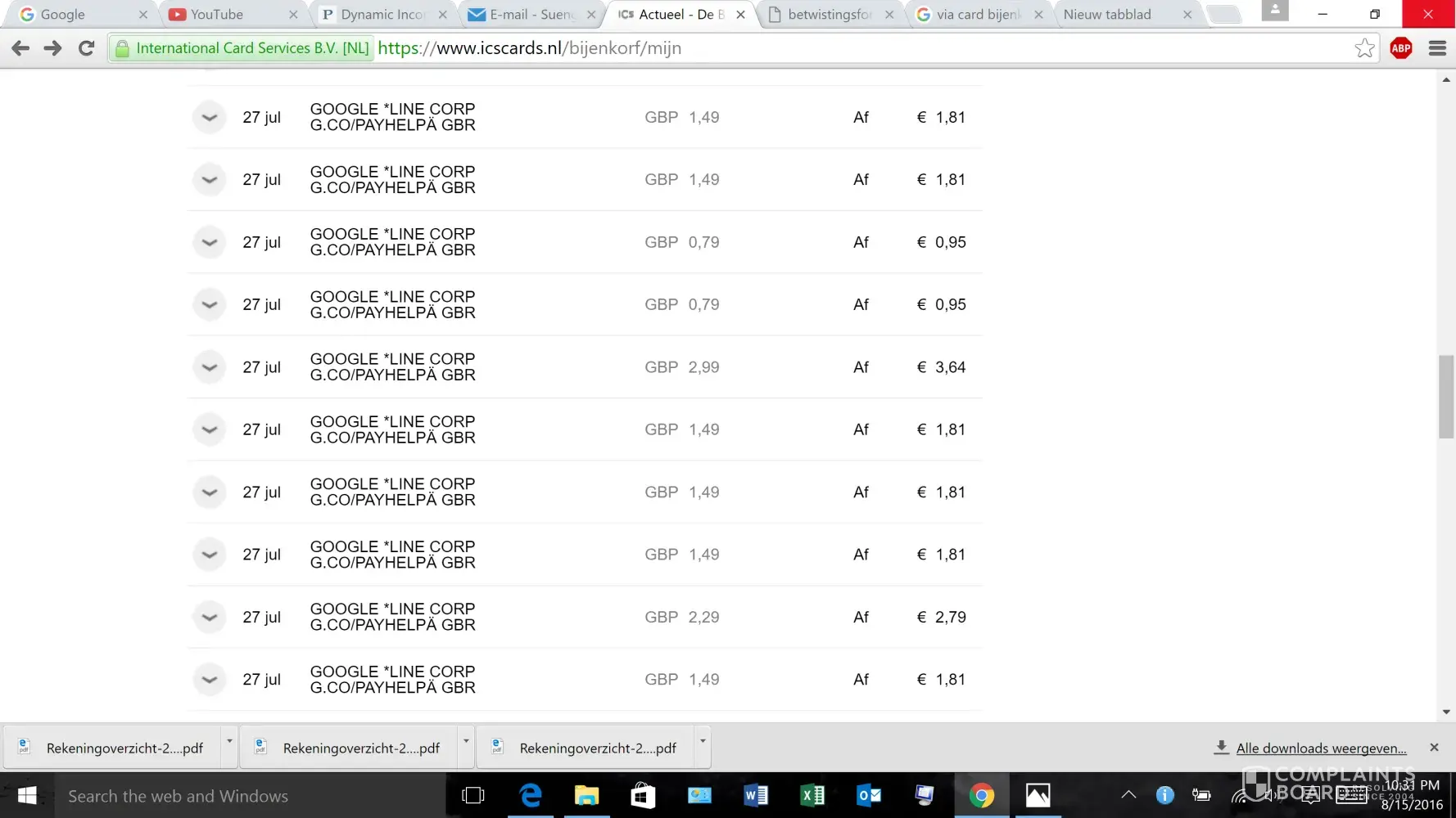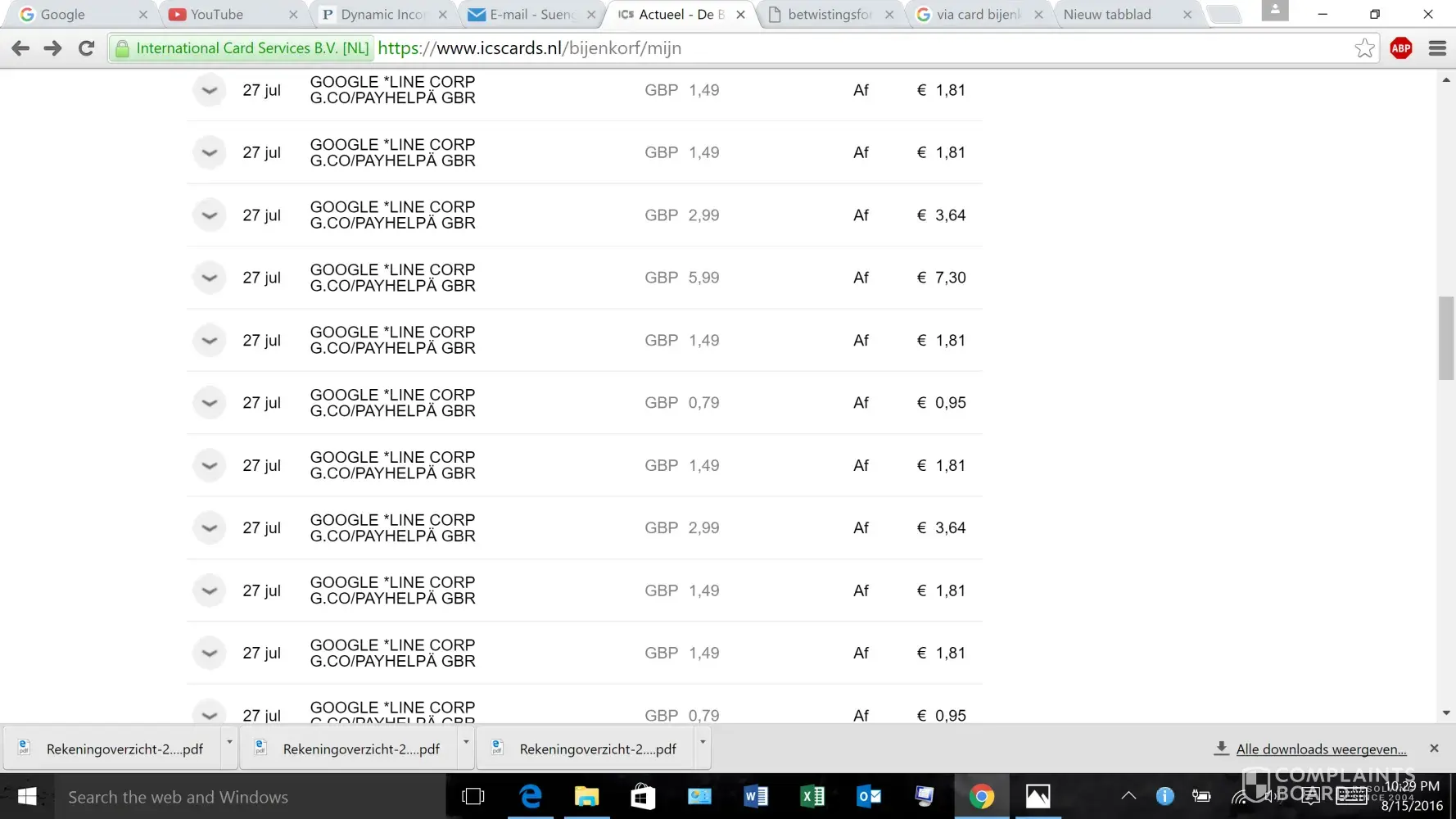 On July 27 2016 Google Line Corporation charge my creditcard (see reference) 45 times . The total amount is GBP 86, 06. The payments was not authorized by me. Please pay back the the total amount ASAP through my creditcard.