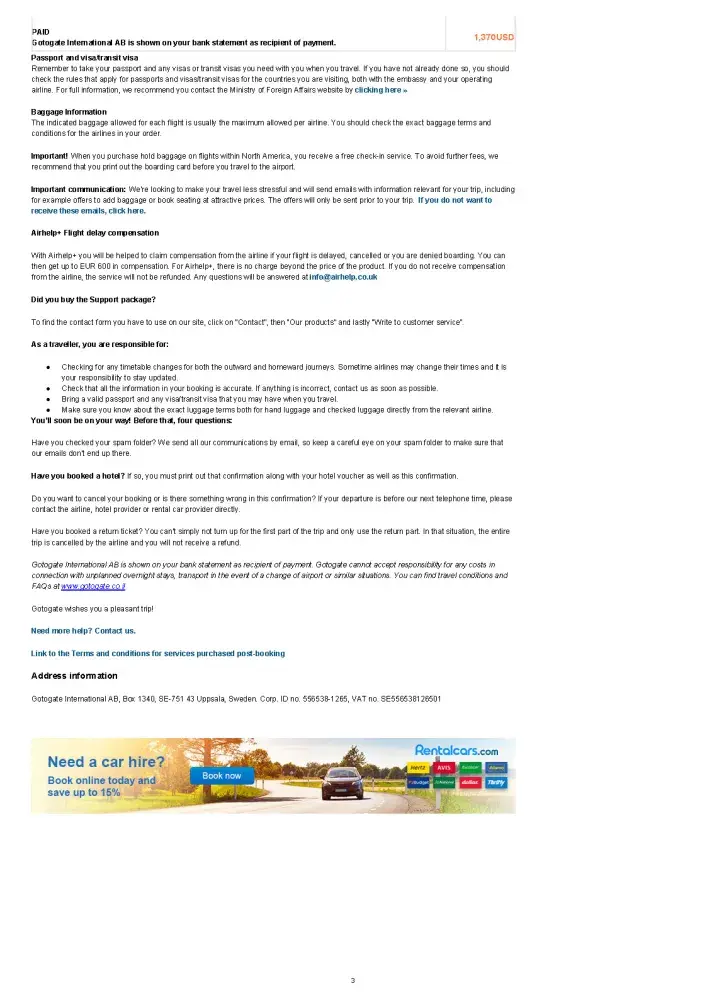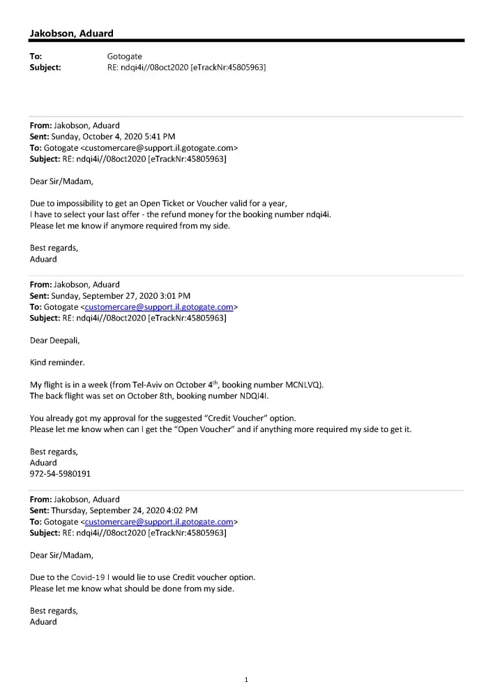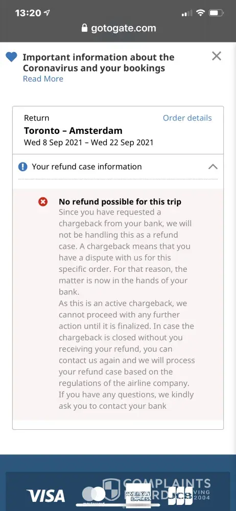 Desired outcome: Refund on flight booked through Gotogate