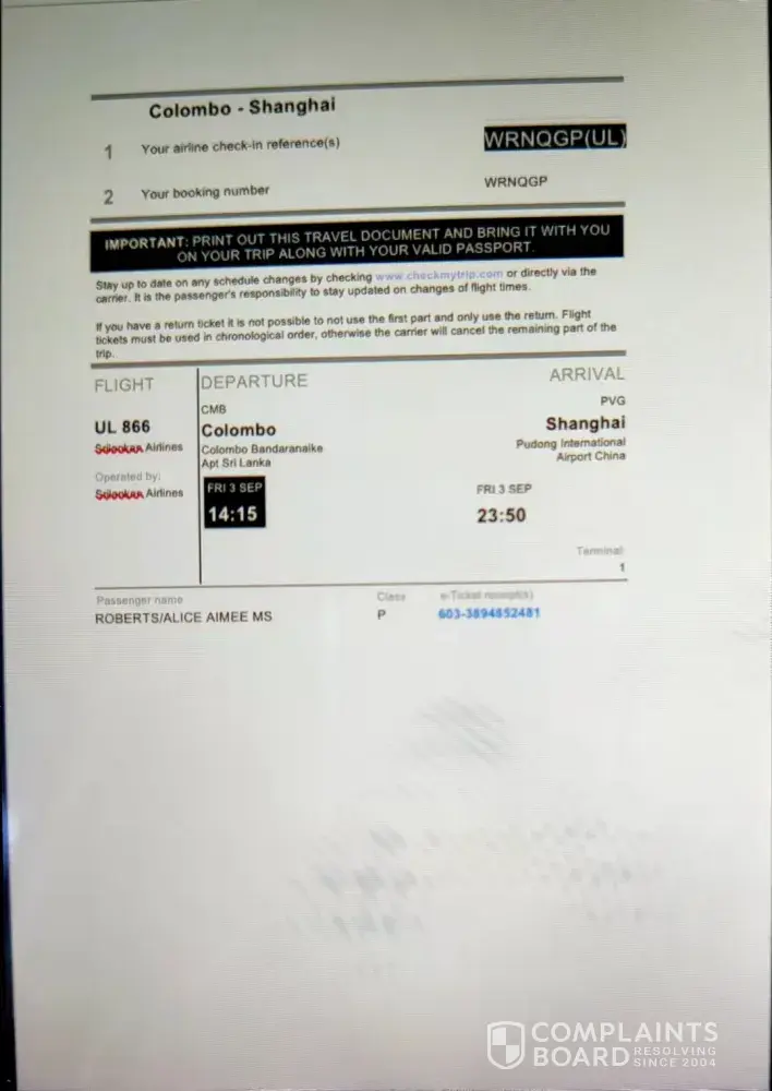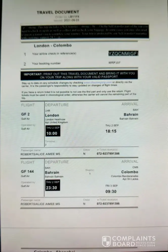 I hope this can be resolved. If not, I will be contacting the relevant aviation/travel agency ombudsman.