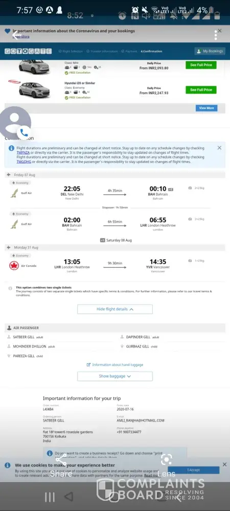During this pandemic everyone is suffering a lot, wheather it's physical, mental or financial issues. As human we should not complicat3 things further for others. We want our money to be refunded or vouchers to be issued. We are just writting mails and calling the customer care number but no action has been taken. It's pathetic. Air Canada told us that they can't help. Gotogate team is so confused that they are not replying & when they do, they don't check there records and told us that the refund has been issued but we received a refund for the gulf airways flight from Delhi to London but what about our uk to canada flight? There were 4 unused tickets.
