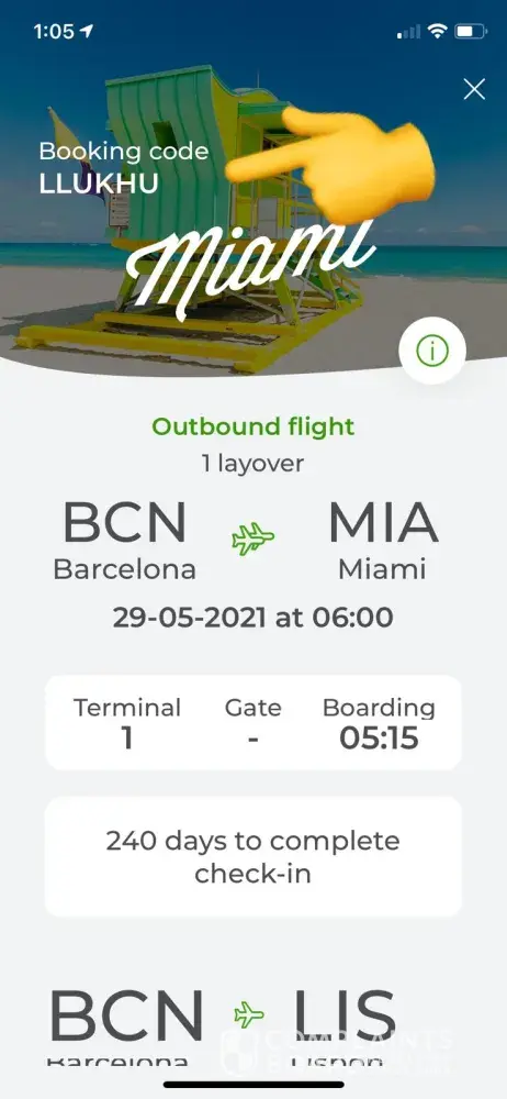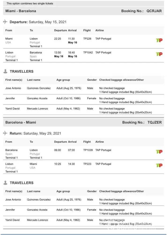 Booking Reference - Flight TQJZER Barceloneta - Miami