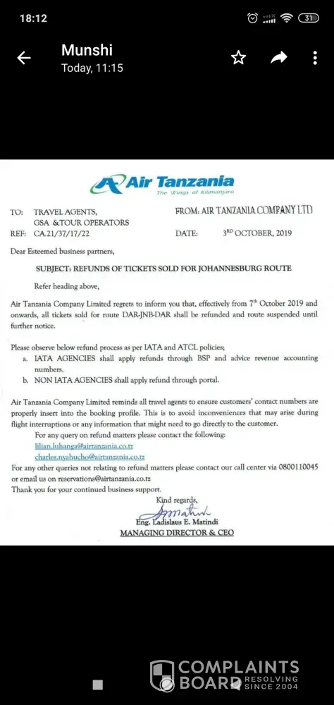 Is my booking was in airtanzania and air tanzania to south africa route suspended i went to air tanzania office at or tambo airport Johannesburg about my refund they told me i must contact my agent who i book with and they must refund u full i talk to gotogate customer help line morden 3 time they told me we will come back to you i am still waiting please help me